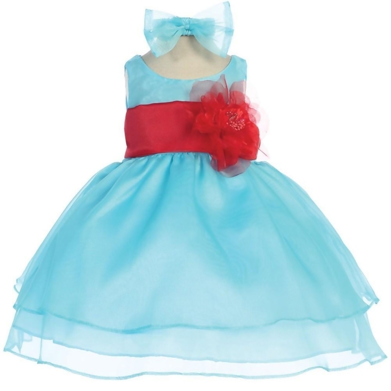 Calla Collection Baby Girls Aqua Red Sash Organza Flower Girl Dress 6 24m From Sophia S Style At Shop Com