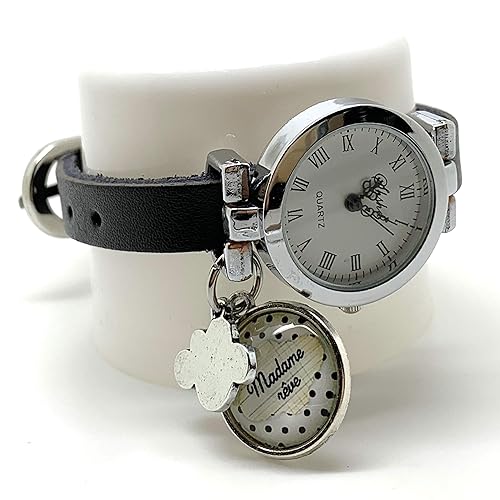 Montre Bracelet En Cuir Noir Argente Madame Reve Cadeau Noel Cadeau Femme Cadeau Saint Valentin Idee Cadeau Ref 1ba Amazon Fr Handmade