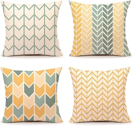 Tidwiace Jaune Et Vert Housse De Coussin 4 Pieces De Coton Lin Durable Coussin Taie D Oreiller 45 X 45 Cm Motifs Imprimes Decoration De La Maison Amazon Fr Cuisine Maison