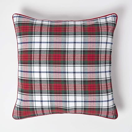 Homescapes Housse De Coussin A Carreaux Ecossais Rouge Et Vert Housse De Coussin Decoratif 60x60 Cm En Coton Amazon Fr Cuisine Maison