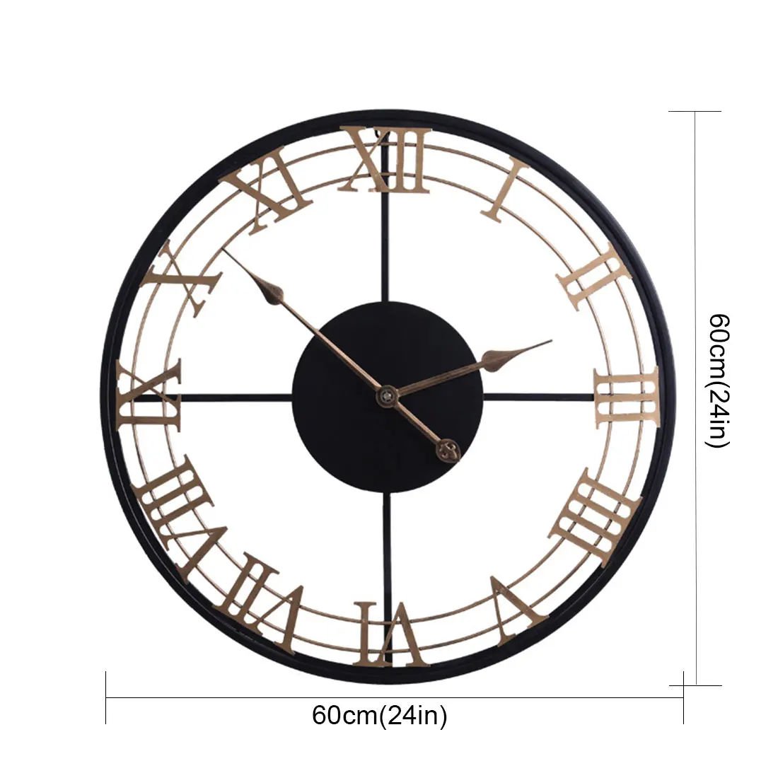 60cm 24 Pouces En Fer Forge Chiffre Romain Horloge Murale Design Moderne Silencieux Horloge Suspendue Montre Pour La Maison Salon Decoration