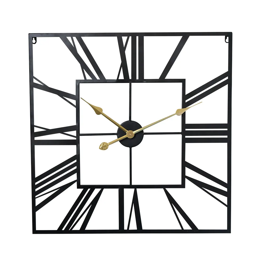 60cm 24 Pouces Carre En Fer Forge Creux Chiffre Romain Horloge Murale Silencieux Horloge Suspendue Pour La Maison Salon Decoration Noir Aliexpress