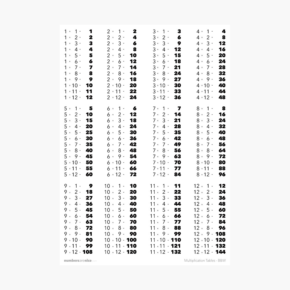 Multiplication tables from 1 to 12 In mathematics, a multiplication table is a mathematical table used to define a multiplication operation for an algebraic system The decimal multiplication table was traditionally taught as an essential part of elementary arithmetic around the world, as it lays the foundation for arithmetic operations with baseten numbers. Table De Multiplication de 1 à 12 Size 36 x 24 inches Style Kids/Family/School Item no # Shipping costs USA $. Color Multiplication Table Worksheet 112 When you are just getting started learning the multiplication tables, these simple printable pages are great tools!.
