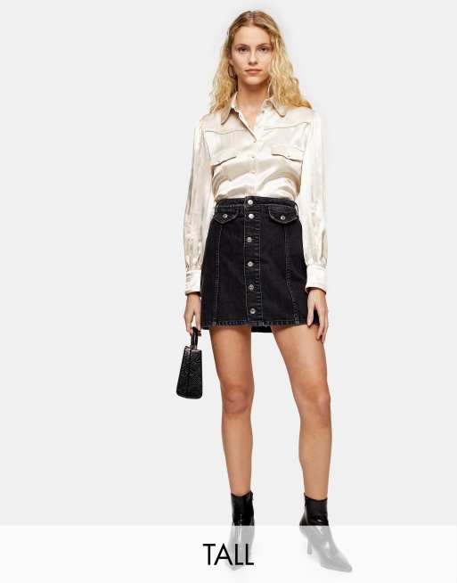 Topshop Tall Mini Jupe En Jean Boutonnee Sur Le Devant Noir Delave Evesham Nj