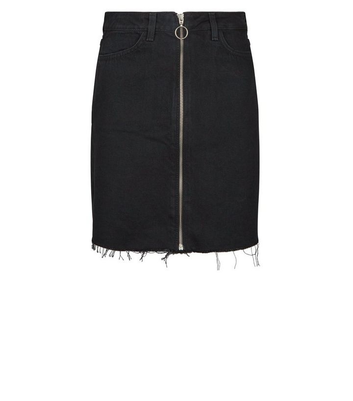 Jupe En Jean Noir A Zip A Anneau Sur L Avant New Look