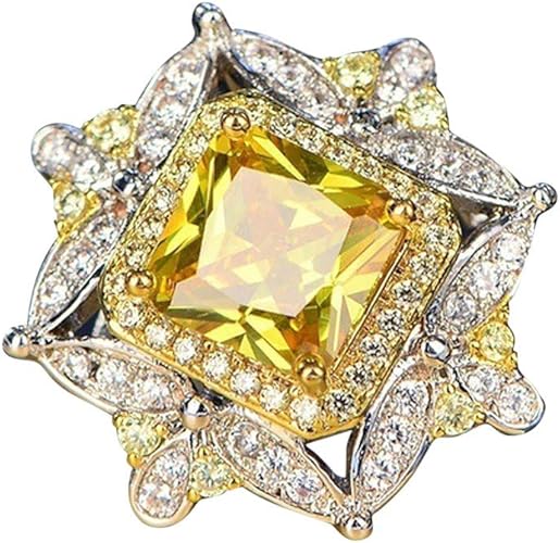 Hcfkj Bague Femme Pas Cher Bague De Fiancailles Fete De Bague De Fiancailles Diamant Jaune Diamant Carre Amazon Fr Bijoux