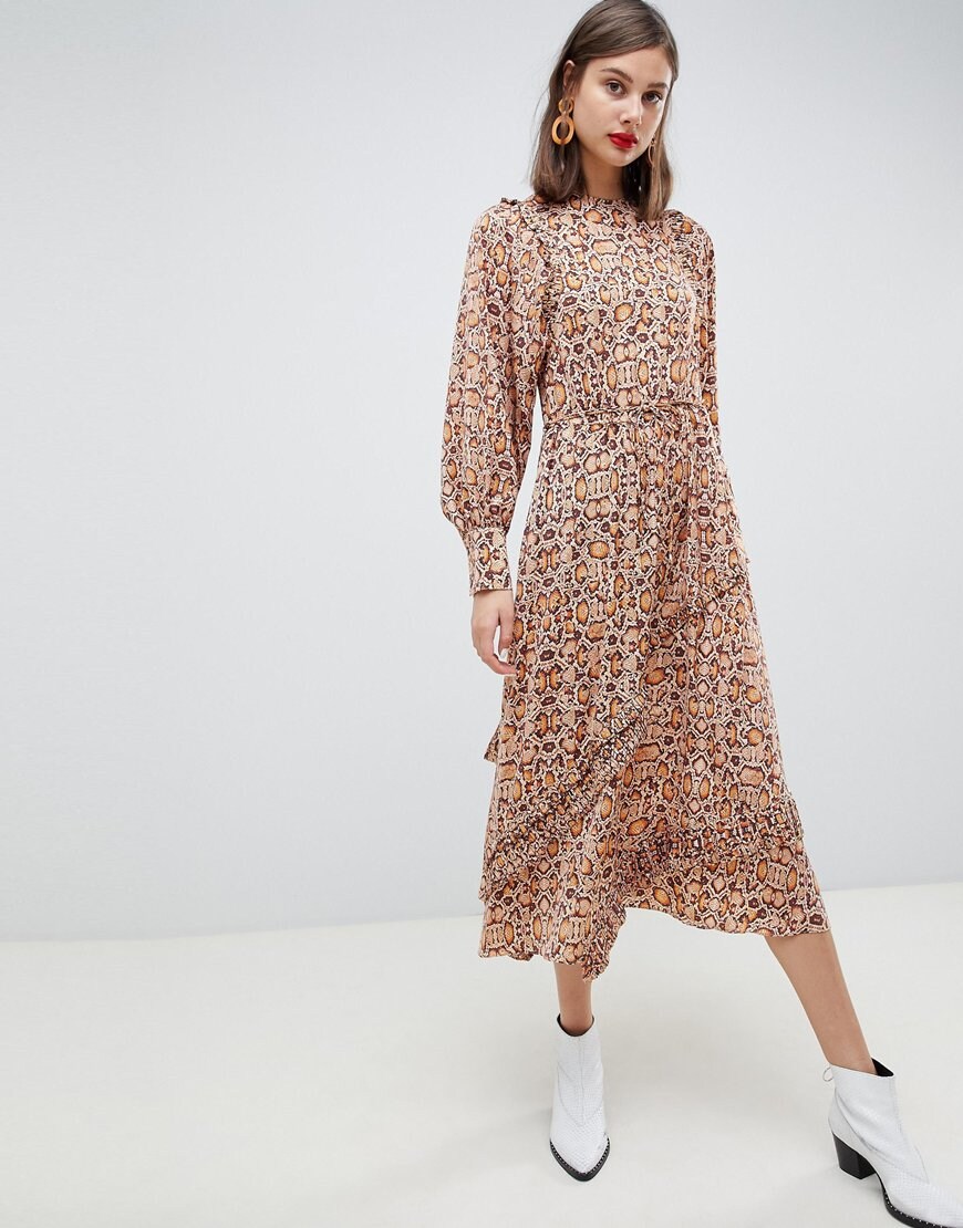 Robe Longue Cintree En Voile Imprime Leopard Ikks Mode Automne Hiver Robe Jupe