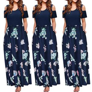 Robe Longue Cintree A Imprime Fleuri Marine Stand Prive