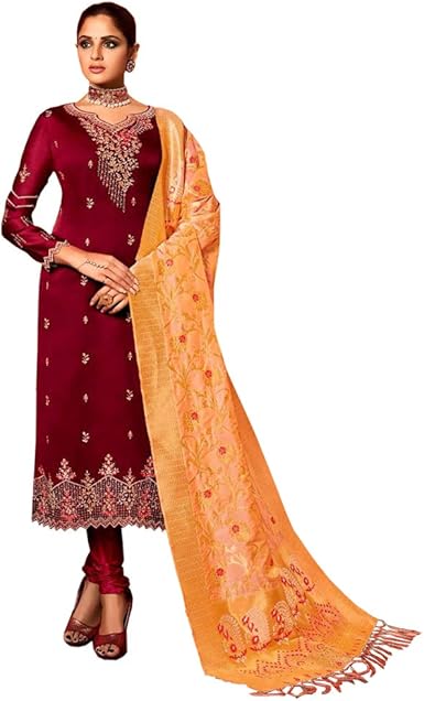 Akalors Costume Indien Salwar Kameez Pour Femme Bordeaux Avec Banarasi Dupatta Rouge 68 Amazon Fr Vetements Et Accessoires