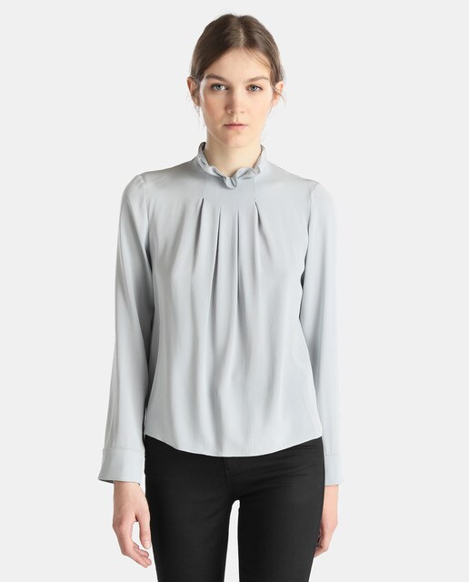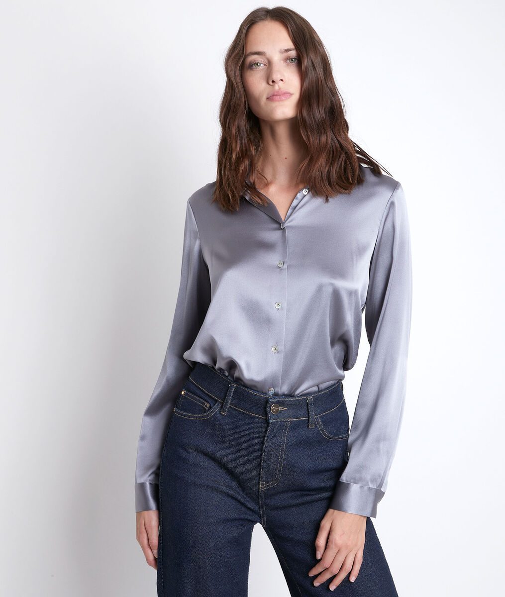Blouse Grise En Cupro Perles Bijoux Femme Ikks Mode Automne Hiver Chemise Blouse