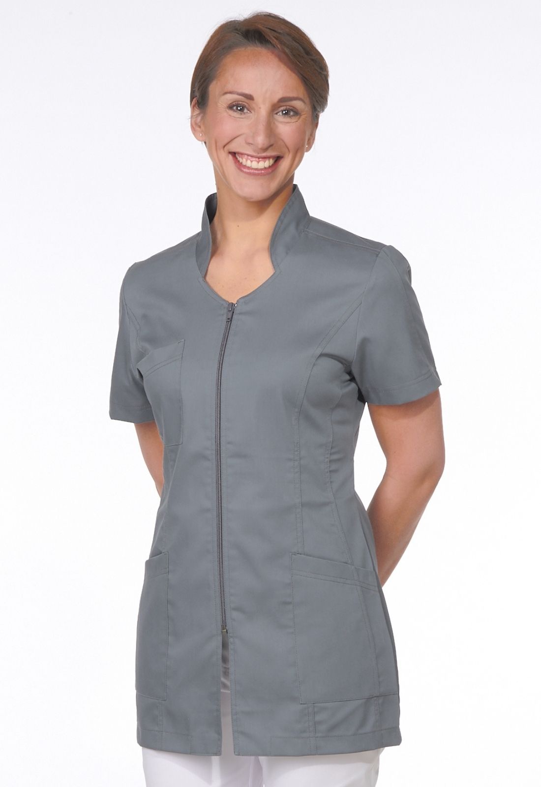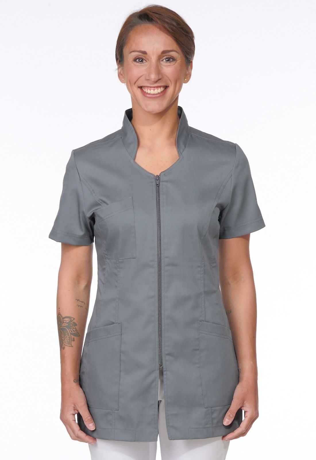 Blouse Medicale Femme Manches Courtes Zippee Pas Cher Gris Clair