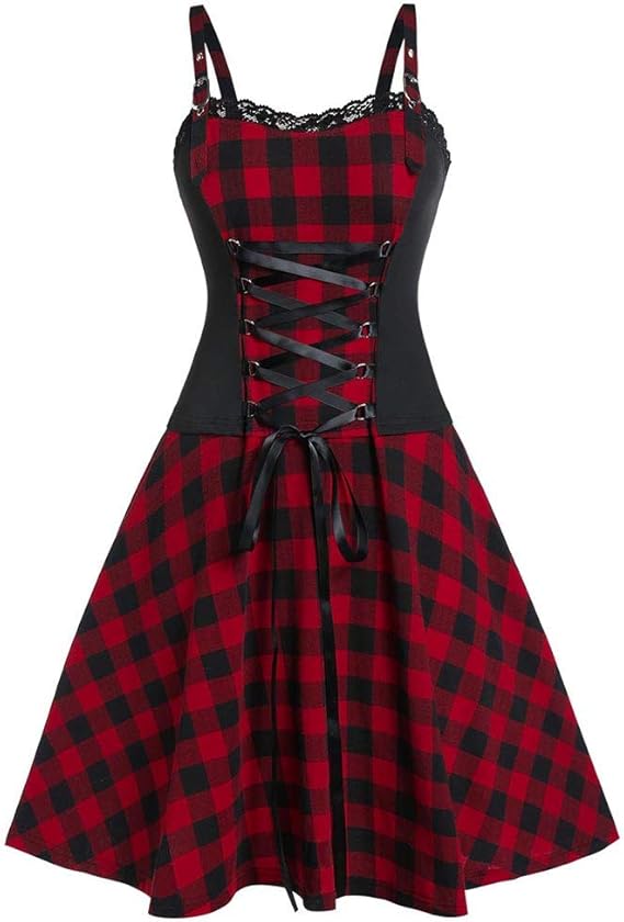 Alisiam Gothique Femme Robe Gothique Lolita Femme Imprime Robe Dentelle Punk Robe Lace Up Noire Gothique Punk Sans Manches Mi Longueur Des Femmes Robe Lolita Robe Costume Halloween Cosplay Soiree Robe Amazon Fr Vetements Et