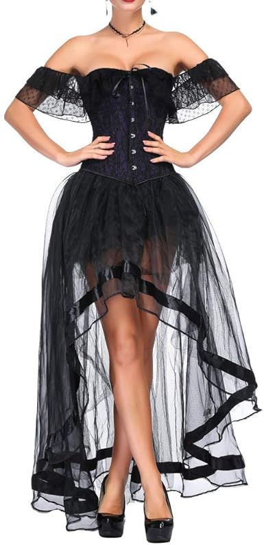 Robe Gothique Femme Sexy Corset Bustier En Dentelle Avec Jupe En Tulle Floral Guepiere Deguisement Gothique Robe Cosplay Bal De Tete Noel Costume Toussaint Robe Corset S 2xl Amazon Fr Vetements Et Accessoires