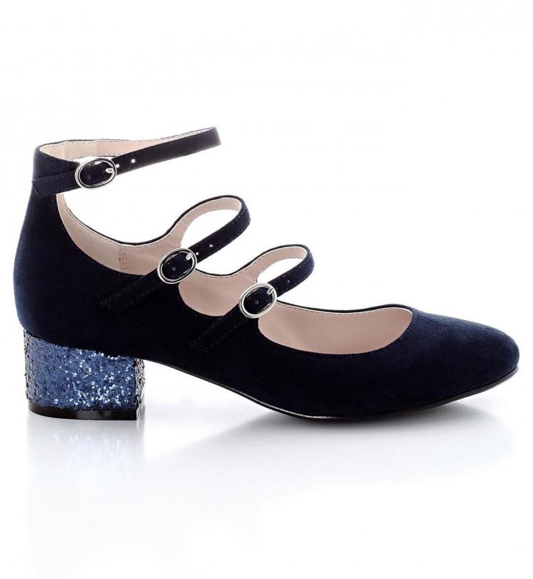 Emzi Paris Glittery Mary Jane Pump Block Heel Alina Eclipse Handmade In Spain