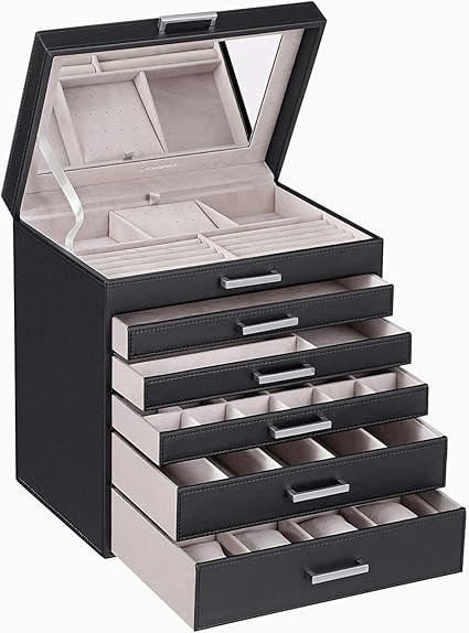 Songmics Boite A Bijoux Grand Coffret A Bijoux De 6 Niveaux Miroir Pour Boucles D Oreille Colliers Bracelets Montres Lunettes Noir Jbc138b Amazon Fr Cuisine Maison