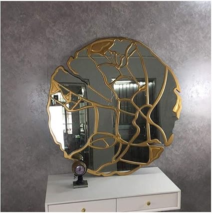 Miroirs Fleur Design Grand Miroir Mural Rond 80x80cm Hall D Entree Salon Salon Chambre Decoration Or Qjing112 Amazon Fr Cuisine Maison