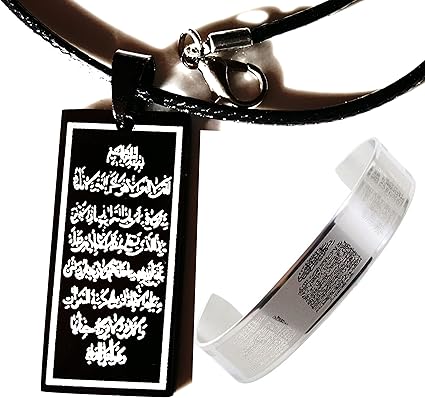 Protection Ayat Al Kursi Bracelet Jonc Collier Femme Pendentif Allah De Coran Musulmane Versets Sura Arabe Cadeau Charm Collier Pendentif Piece En Acier Inoxydable Fete De L Aid Amazon Fr Cuisine