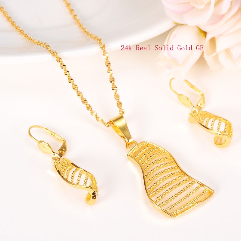 Acheter Femmes Mode Cadeau Ensemble De Bijoux Collier Plaine Voile Boucles Doreilles Pendentif Ensembles De Mariage 24 K Reel Jaune Solide Or Fin Gf Longtemps De 4 64 Du Wwwabcdefg6 Dhgate Com