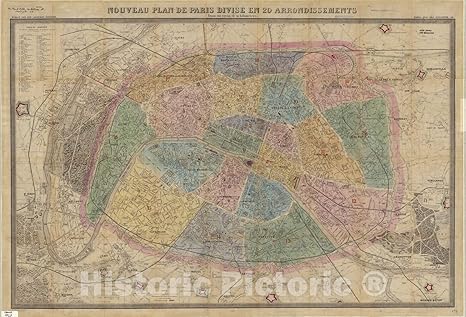 Amazon Com Historic Pictoric Map Paris France 1871 Nouveau Plan De Paris Divise En Arrondissements Dans Un Rayon De 10 Kilometres Antique Vintage Reproduction 65in X 44in Posters Prints