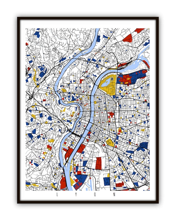 Lyon Map Art Lyon France Wall Art Print Poster Modern Etsy