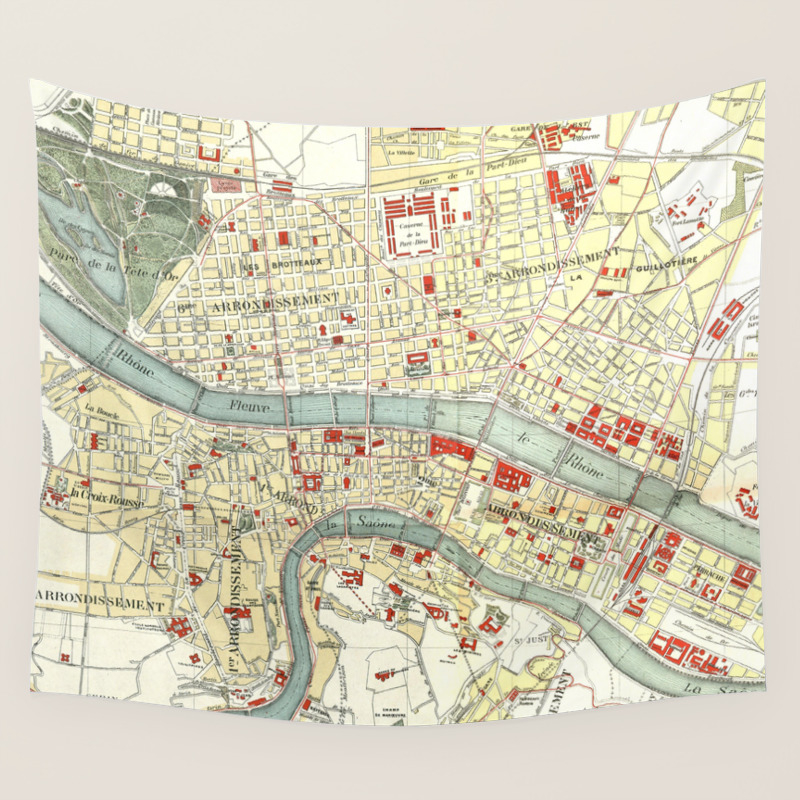 Vintage Map Of Lyon France 1900 Wall Tapestry By Bravuramedia Society6
