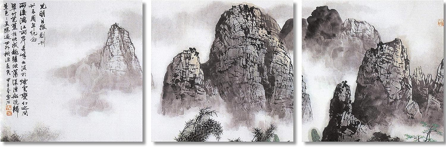 Amazon Com Tutubeer Chinese Landscape Paintings Prints On Canvas Chinese Canvas Art Landscape The Picture Traditional Chinese Art Prints Famous Chinese Landscape Painting Framed For Home Modern Decor 3pcs Set Posters Prints