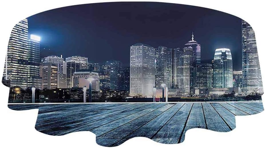 Amazon Com Shirlyhome Landscape Circular Table Cover China Hong Kong City Skyline View At Blue Night Towers And Skyscapers Photo Textured Tablecloths Navy Blue Diameter 36 Home Kitchen