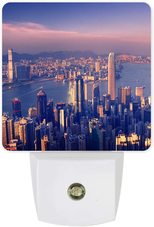 Plug In Led Night Light Hong Kong City Building Landscape Skyline At Dusk Smart Dusk To Dawn Sensor Night Lamp For Bedroom Kids Room Nursery Hallway Stairs Kitchen Wall Decorative Amazon Com