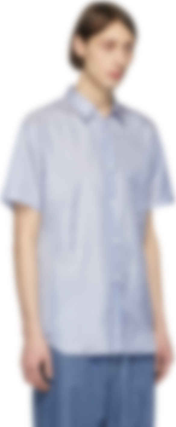 Blue White Striped Cupro Short Sleeve Shirt By Comme Des Garcons Shirt On Sale