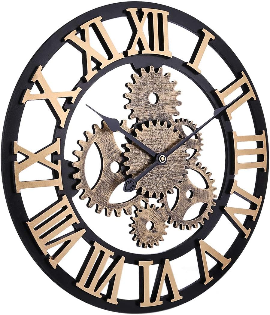 Horloge Murale Design Retro Vintage Avec Veritables Engrenages