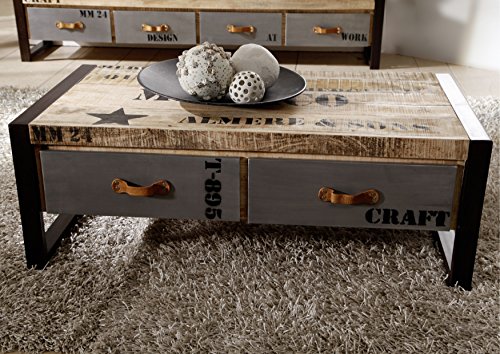 Table Basse Industrielle 140x80cm Bois Massif De Manguier Brut Fer Et Bois Imprime Factory 111 Amazon Fr Cuisine Maison