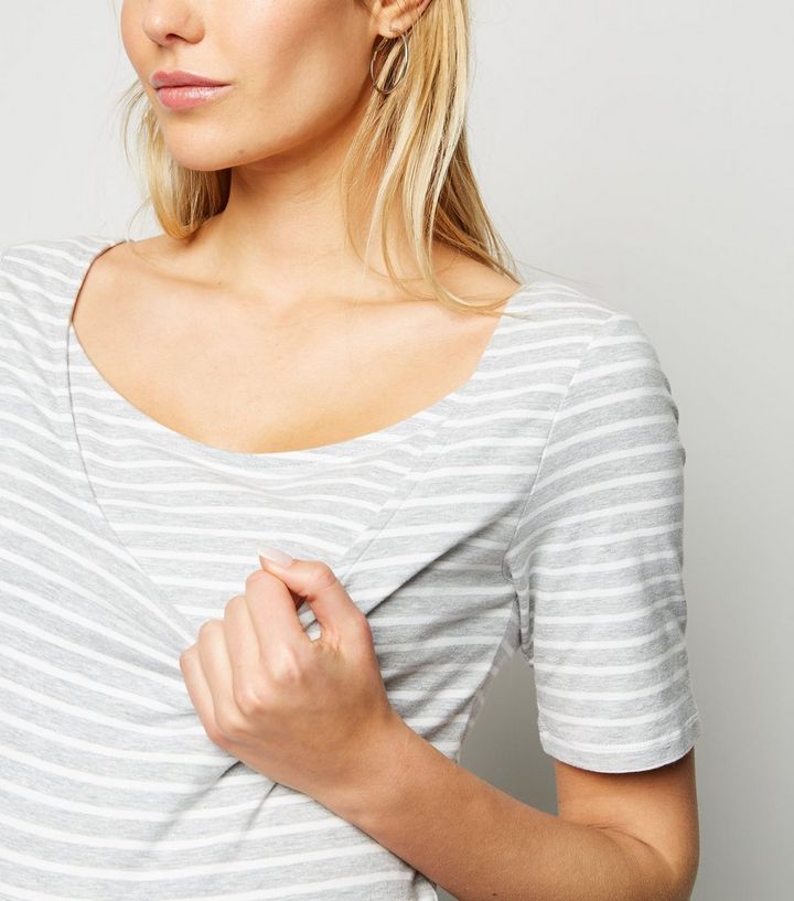 Maternite Robe D Allaitement Gris Clair A Rayures New Look
