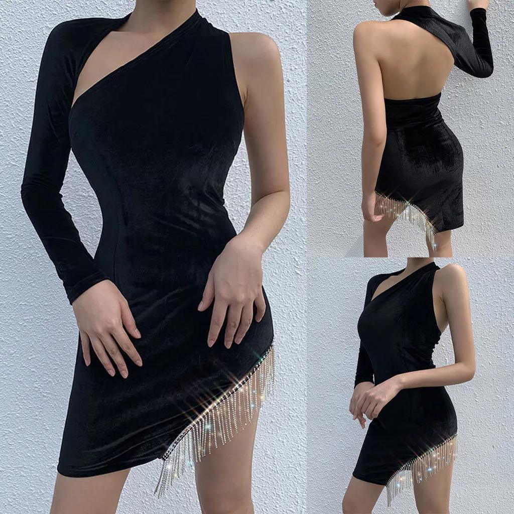 Femmes Sexy Mini Robe Moulante Robe De Club Femmes Solide Irreguliere Dos Ouvert Robe A Manches Longues Gland Fendu Sexy Robe Courte G3 Aliexpress