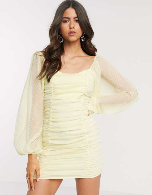 Asos Design Robe Courte Moulante Froncee A Manches Bouffantes Et Tulle A Pois Asos