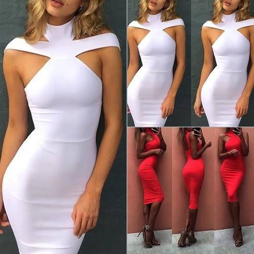 Acheter Les Femmes Dete Sans Manches Bandage Moulante Soiree Cocktail Courte Mini Robe Blackred Couleur Blanc Polyester Vetements Sexy De 30 28 Du Aliceyan1109 Dhgate Com