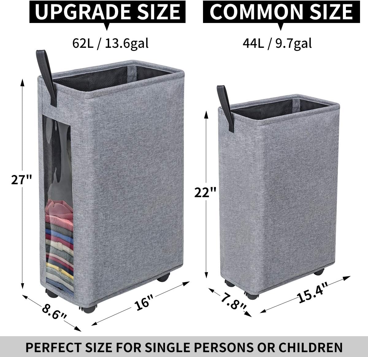 Umi Grand Panier De Blanchisserie Roulant Avec Le Panier Mince De Blanchisserie De Roues Avec La Grande Fenetre Claire Panier A Linge Sale Corbeille De Rangement Pour Vetements Minces Beige Corbeilles A