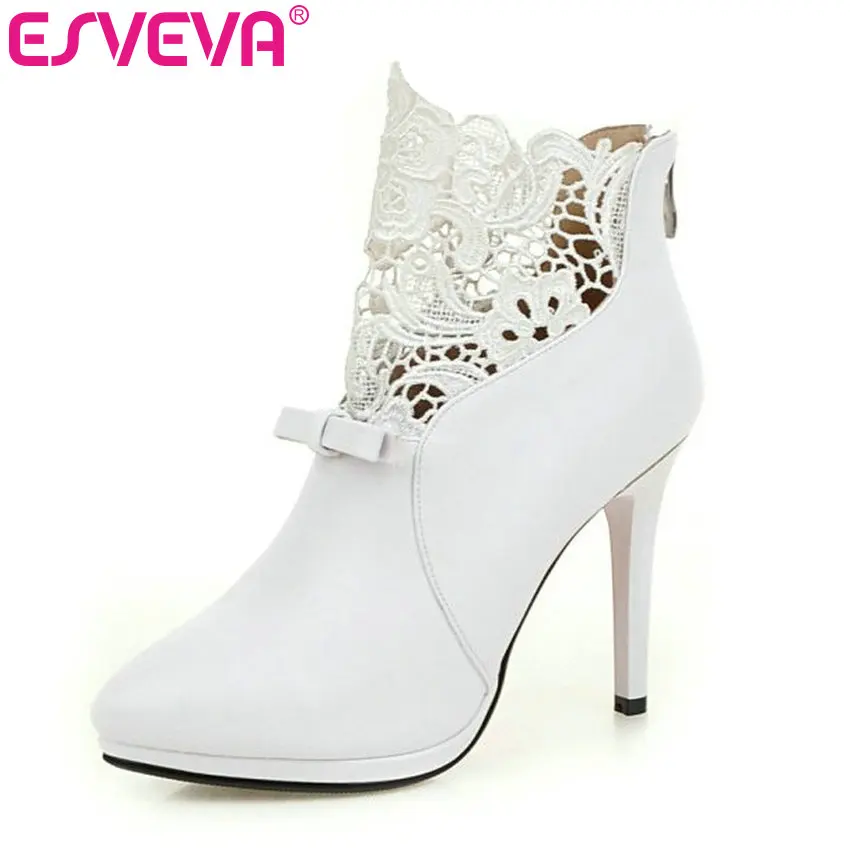 Esvevea Automne Blanc Chaussures De Mariage Sexy Femmes Bottes Dentelle Mince Talon Haut Pu Bottines Bout Pointu Nœud Papillon Bottes Taille 34 42 Aliexpress