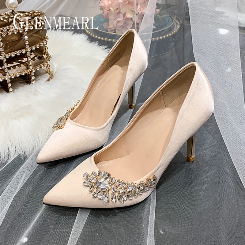 Luxe Femmes Chaussures De Mariage Talons Hauts Strass Soie Femme Pompes Bout Pointu Marque Parti Chaussures Talons Grande Taille Nouveaute Aliexpress