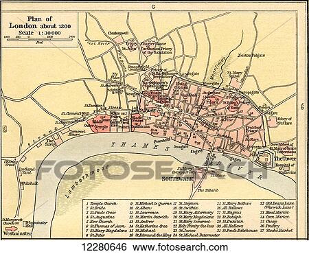 Plan De Londres Angleterre C 1300 Depuis Historique Atlas Publie 1923 Banque De Photographies Fotosearch