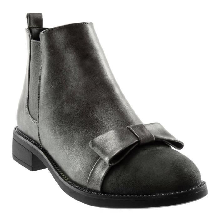 Angkorly Chaussure Mode Bottine Chelsea Boots Bi Matiere Chic Femme Noeud Papillon Strass Diamant Elastique Talon Bloc 3 Cm Gris Argente Achat Vente Bottine Cdiscount