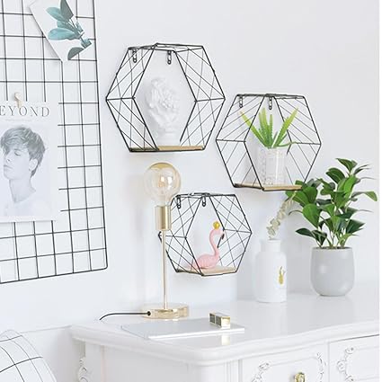 Style Nordique Fer Grille Hexagonale Etagere Murale Combinaison Tentur Diwinnshop