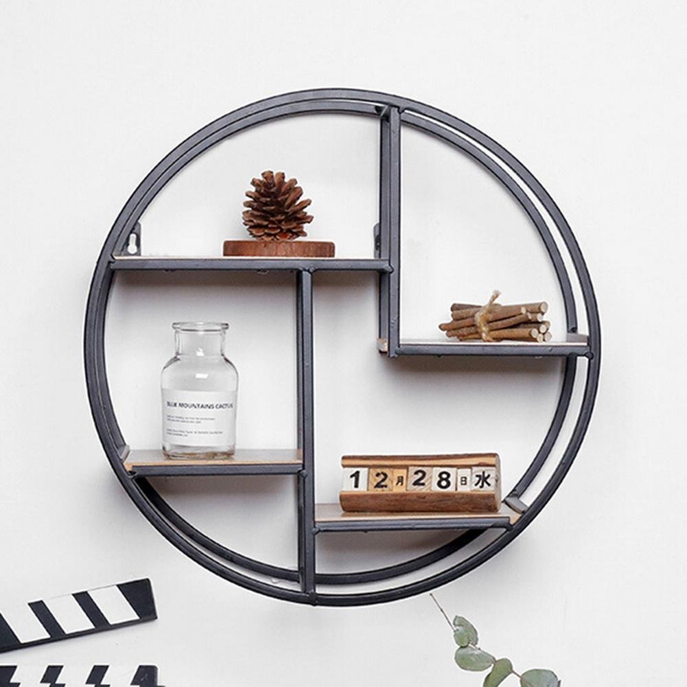 Casiers Etageres Et Tiroirs Anna Neek Etagere Murale En Fer Forge En Bois Pour Salon De Bar En Forme De Ronde Pour Chambre A Coucher Comme Etagere De Rangement Support A Fleurs Comme