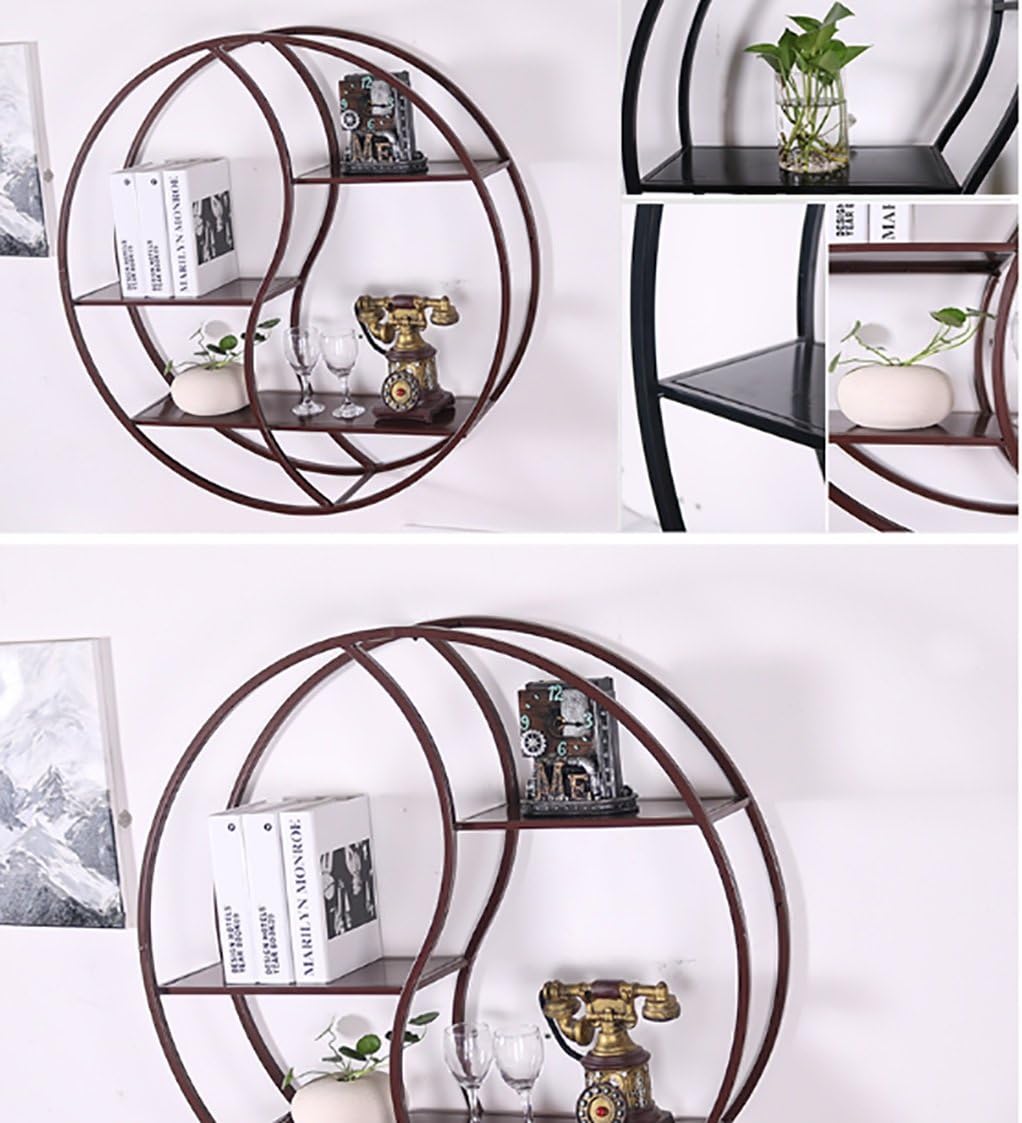 Tablettes Murales Fer Forge Mur Grilles Retro En Fer Forge Etagere Murale Stockage Circulaire Rack Salon Decoration Etagere 80 Couleur Marron Cm Cuisine Maison Etageres D Angle