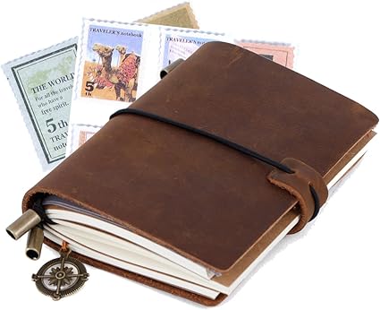 Cuir Bloc Note Carnet Vintage Carnet De Notes Agenda De Voyage En Cuir Veritable Et 5 Timbres Et 1 Poche A Fermeture Eclair Rechargeable Carnet En Cuir 5 1 4 1 Marron Marron