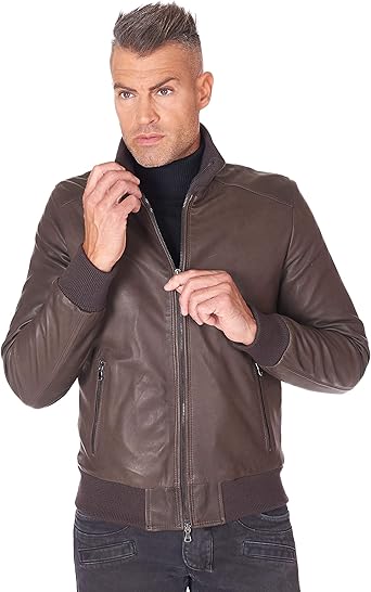 Veste Blouson En Cuir Homme Marron Fonce Made In Italy Col Montant Amazon Fr Handmade