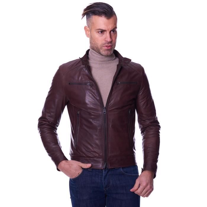 Ted Couleur Marron Foncee Blouson Cuir Homme Style Motard Cuir D Agneau Aspect Vintage Colore Marron Marron Achat Vente Blouson Soldes Sur Cdiscount Des Le Janvier Cdiscount