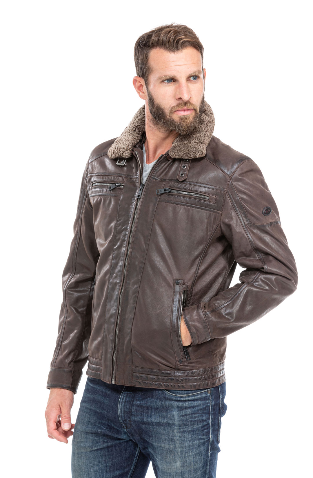 Veste En Cuir Marron Fonce Homme のギャラリー