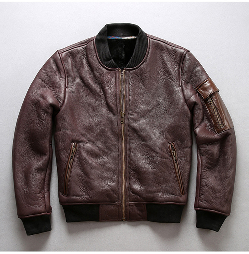 Veste Cuir Peau De Mouton Homme Veste Marron Fonce Veste Volante Originale Manteau Fourrure Homme Aviation Maroquinerie Pilote Manteau Wz Aliexpress