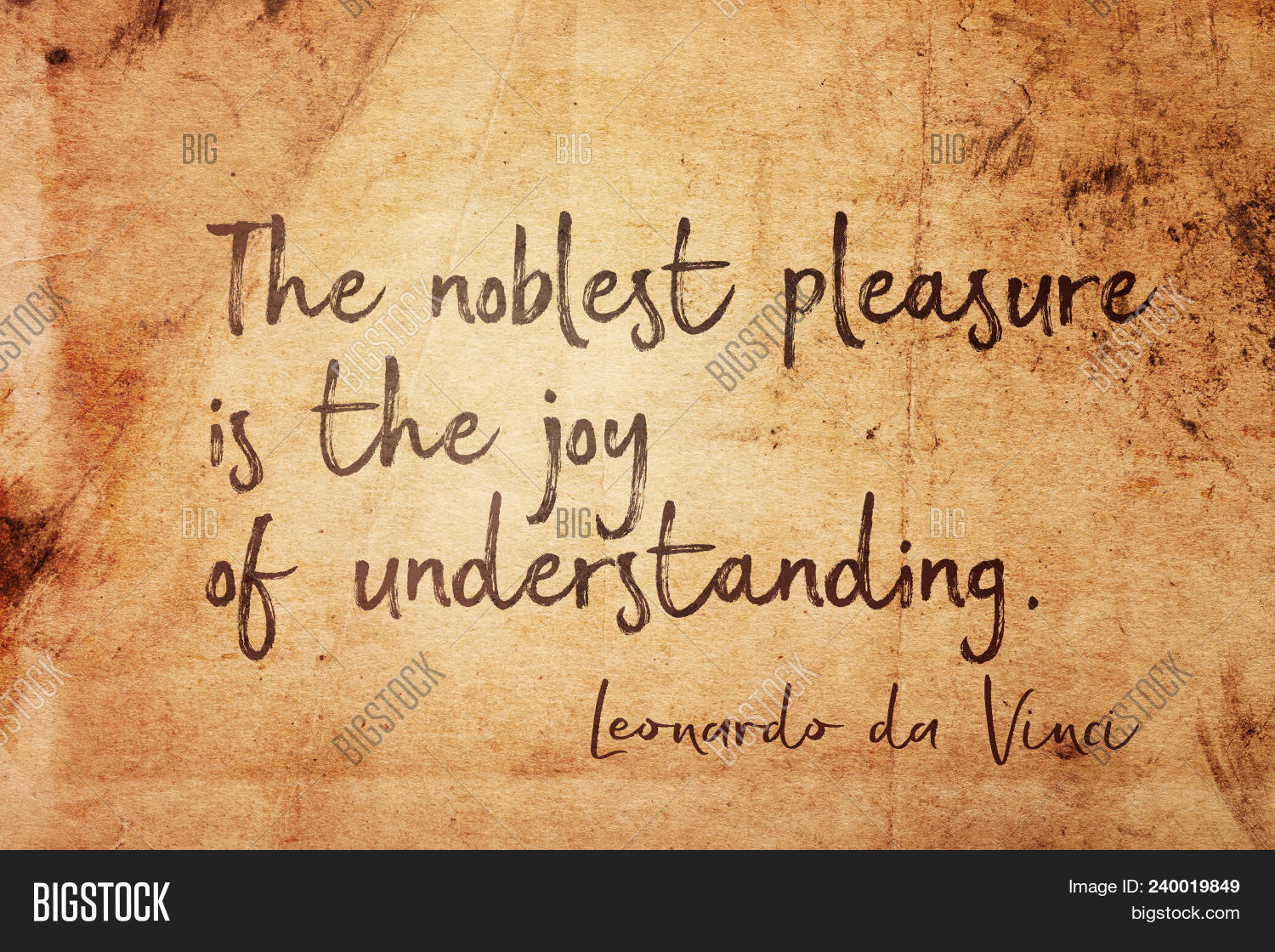 The Noblest Pleasure Is The Joy Of Understanding Ancient Italian Artist Leonardo Da Vinci Quote Pr Image Stock Photo