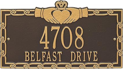 Amazon Com Whitehall Claddagh Standard Address Plaque Finish Bronze And Gold Outdoor Plaques Garden Outdoor